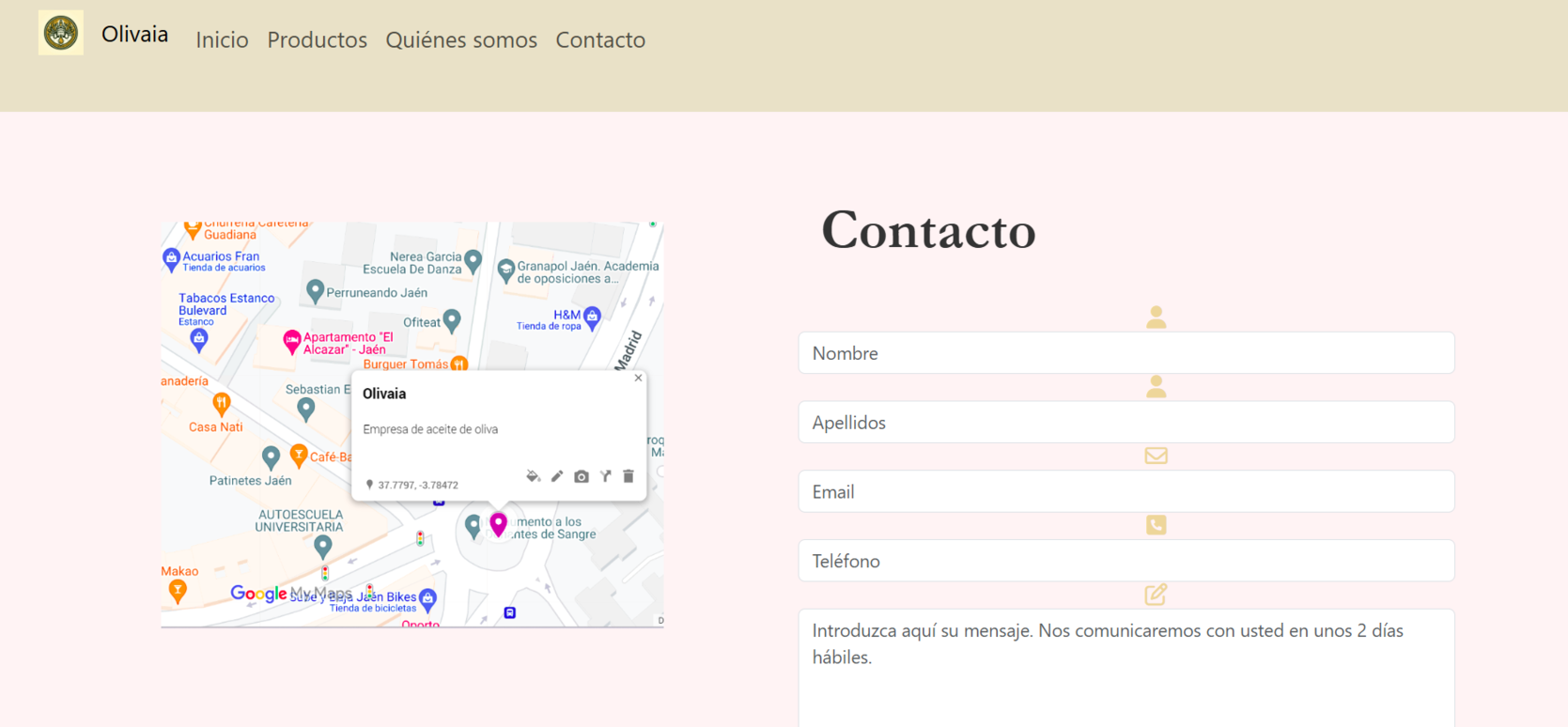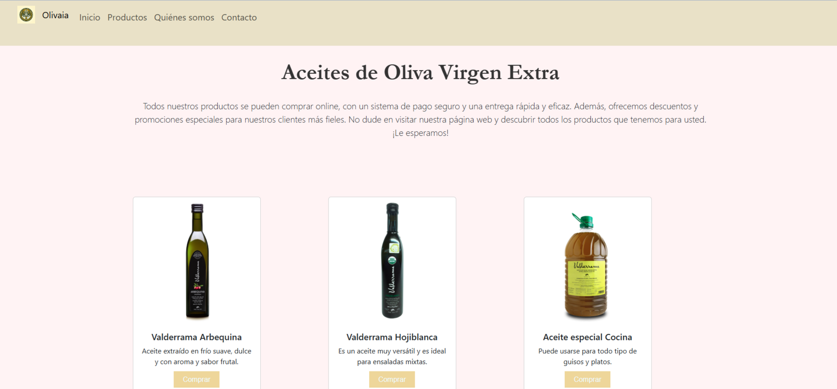 Olivaia es una interfaz gráfica para la Web de una Empresa de Aceite de Oliva situada en Jaén realizada como Proyecto Académico.